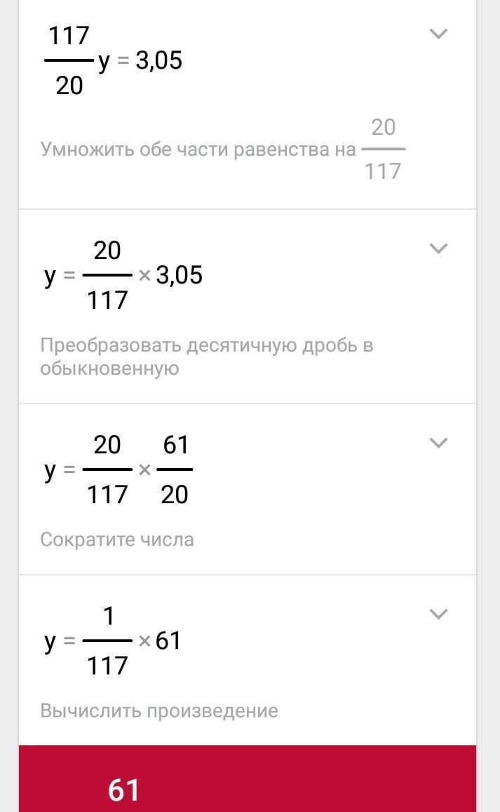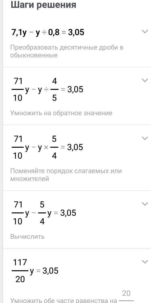 б) (7,1y-y)÷ 0,8= 3,05