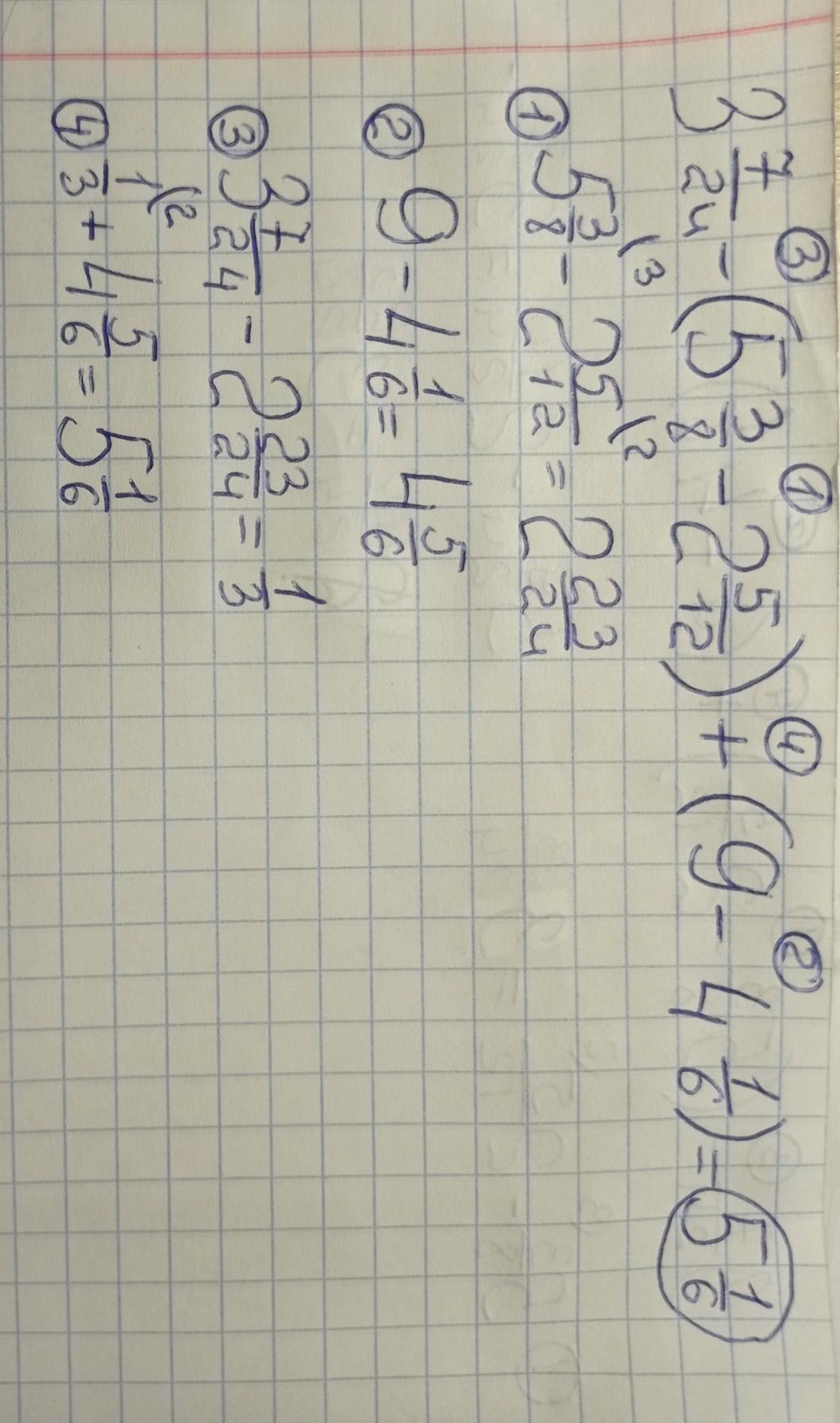4) 1/3+4 5/6=2/6+4 5/6= 5 1/6