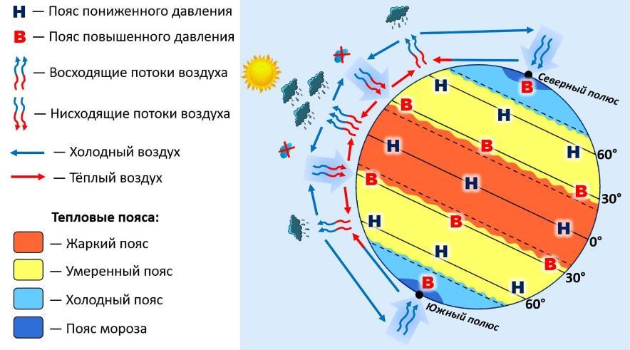 В поясах высокого давления выпадает мало осадков , потому что воздух в них: опускается, нагревается, удаляется от насыщения.