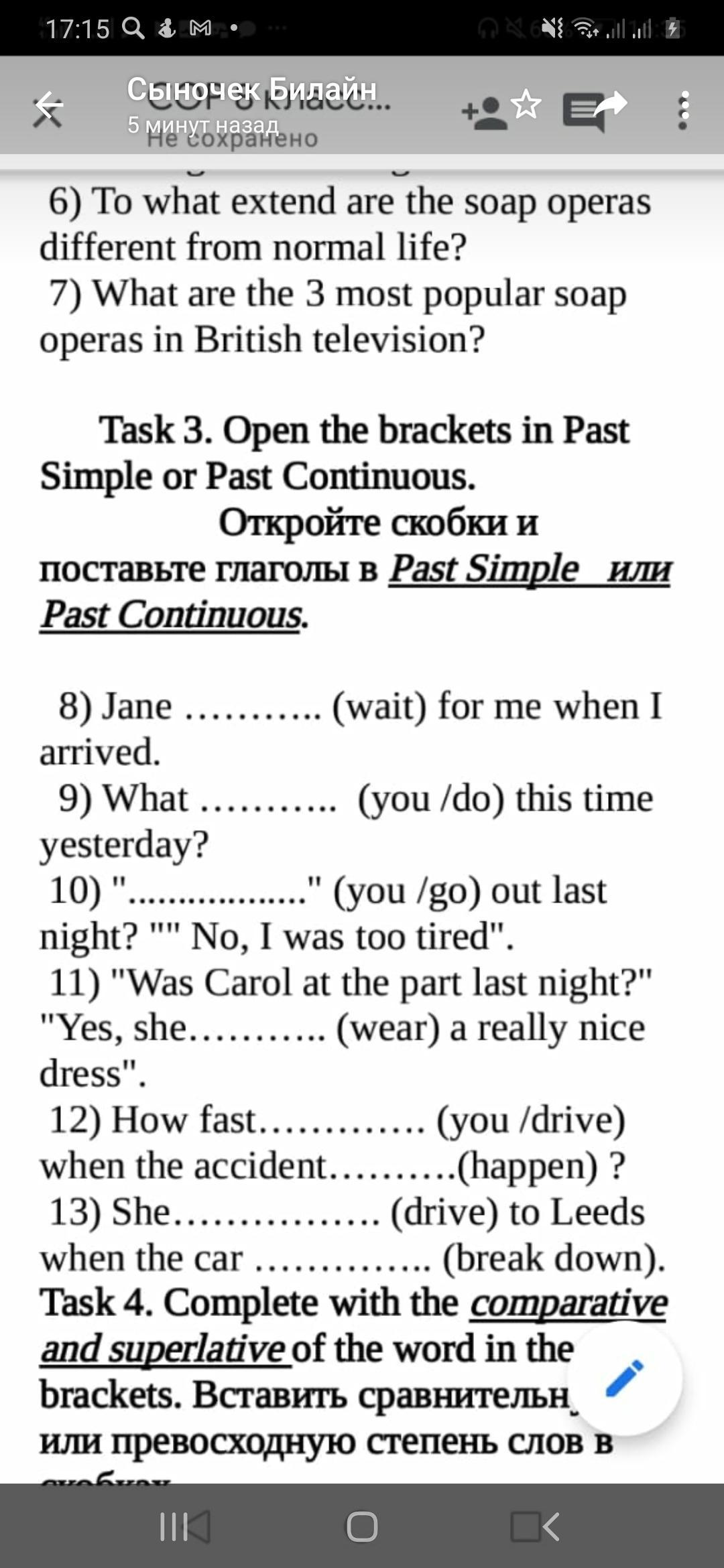 10) "Did you go out last night?" "No, I was too tired". (P. S.)