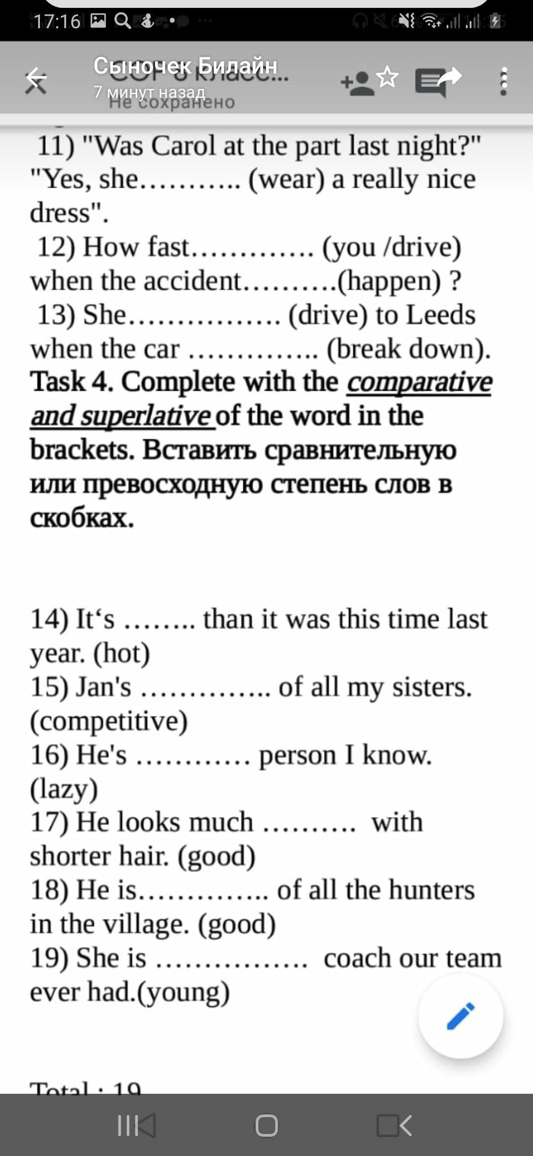 13) She was driving (P. C.) to Leeds when the car broke down (P. S.).