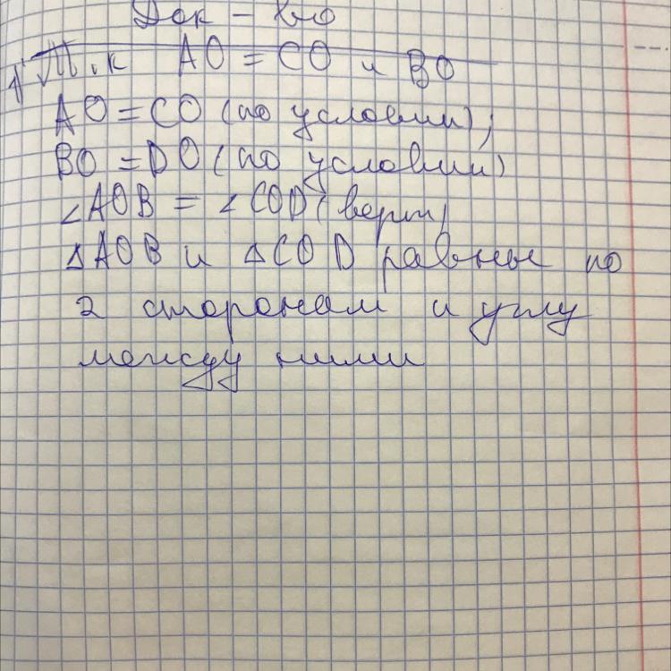 Угл aob и угл cod равны по 2 сторонам и углу между ними