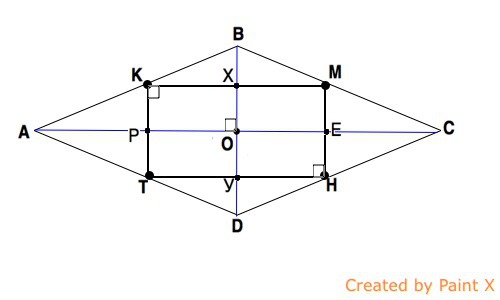 Обозначим точки пересечения диагонали АС параллелограмма АВСД со сторонам КТ и МН буквами Р и Е, а точки пересечения диагонали ВД со сторонами КМ и ТН буквами Х и У соответственно.