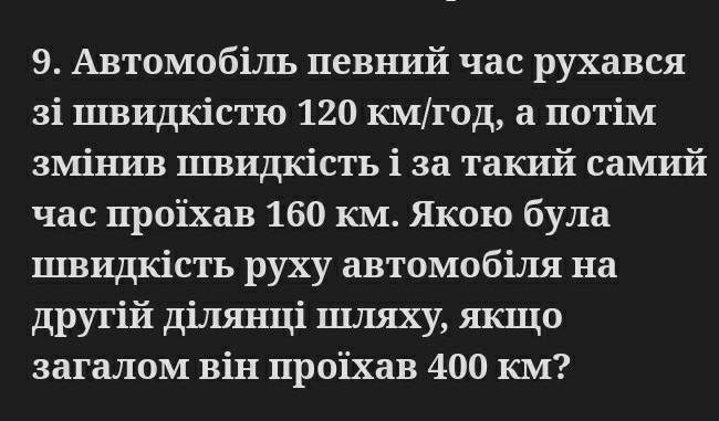 Швидкість руху автомобіля на другій ділянці шляху була 80км/год
