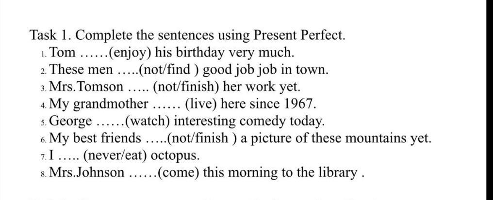 1. Tom has enjoyed his birthday very much.