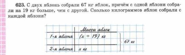 1 действие - 67+19 =86 2 действие- 86 :2=43 кг