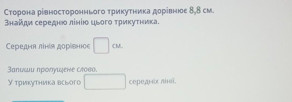 Средняя линия треугольника соединяет средины боковых сторон этого треугольника, а длина ее равна половине той стороны, которая параллельна ей:
