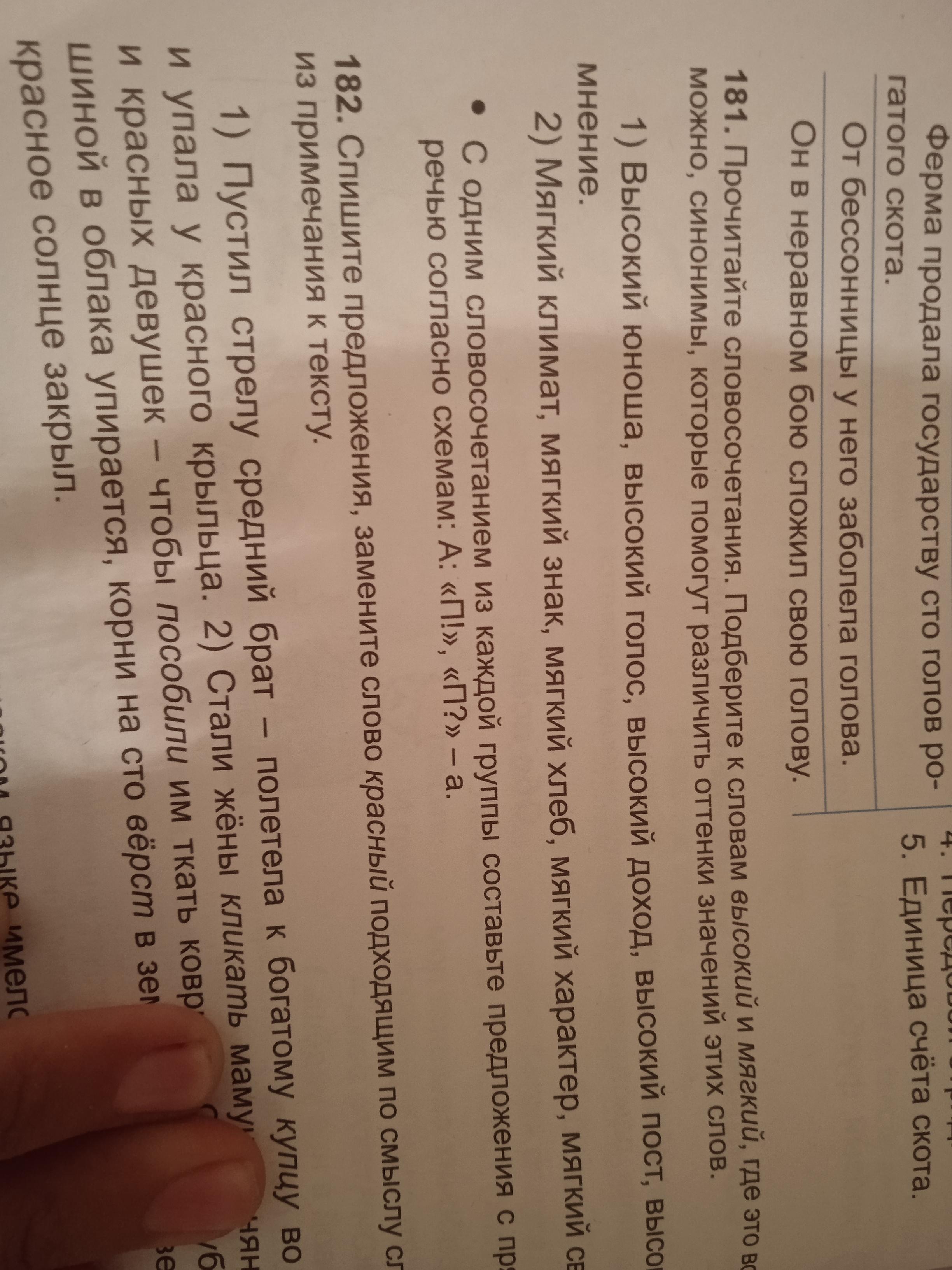 Ответ:1) Рослый юноша, тонкий голос, большой доход, важный пост, значительное, хорошее мнение.