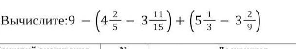 1) 4 2/5 - 3 11/15 = 4 6/15 - 3 11/15 = 3 21/15 - 3 11/15 = 10/15 = 2/3