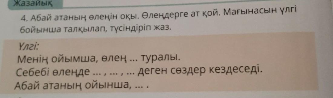 Абай атаның ойынша қыс өте суық келеді күзде күн жыли бастайды және құстар қайтып келеді ал жазда болса күн өте ыстық болады балалар көлге шомылып бассейніне түседі