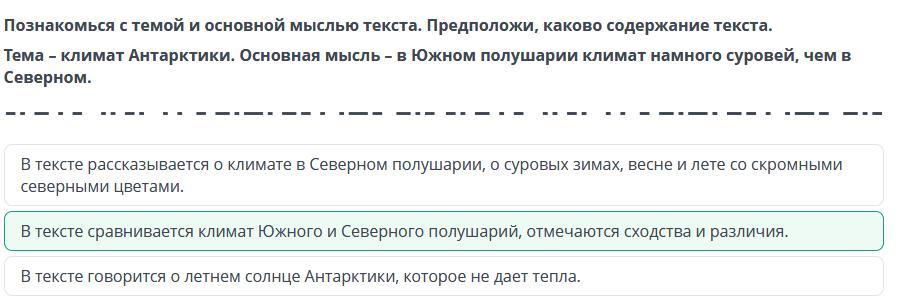 Тема – климат Антарктики. Основная мысль