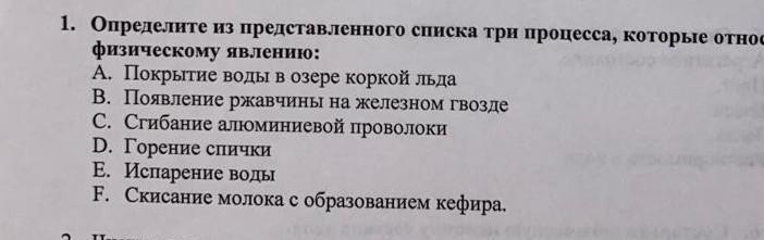 определите из представленного списка три проццеса, которые относятся к физическому явлению