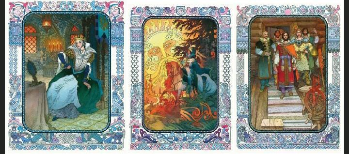 3. Рассмотрите иллюстрации художника Вячеслава Назарука к сказке А. С. Пушкина «Сказка о мертвой царевне и о семи богатырях». Подумайте, к каким эпизодам сказки соответствуют иллюстрации. Выберите один эпизод и перескажите его, используя слова и обороты авторского текста.