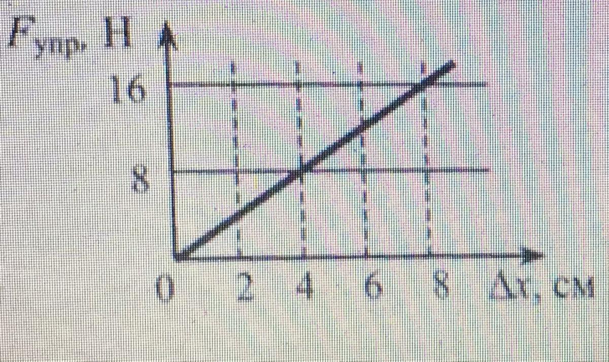 Сила упругости находиться по формуле Fупр = -k*x, где к - это коэффицент упругости, а х - удлинение. Тогда взяв удобную точку. Например, (4;8) получим, что k = 8/4 = 2
