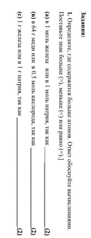 Определите, где содержится больше атомов. Ответ обоснуйте вычислениями. Поставьте знак больше ( > ), меньше ( < ) или равно ( = ).