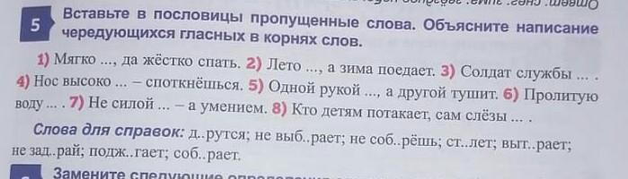 1) стелет 2) собирает 3) сори не знаю 4) не задирай 5) поджигает 6) не соберешь 7) борются 8) проливает