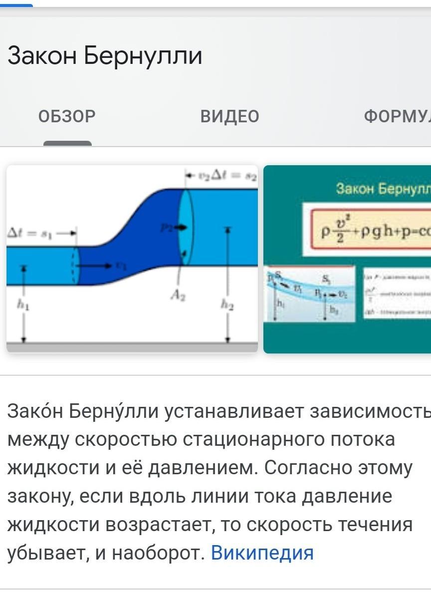2.устанавливает зависимость между скоростью стационарного потока жидкости и её давлением. Согласно этому закону, если вдоль линии тока давление жидкости возрастает, то скорость течения убывает