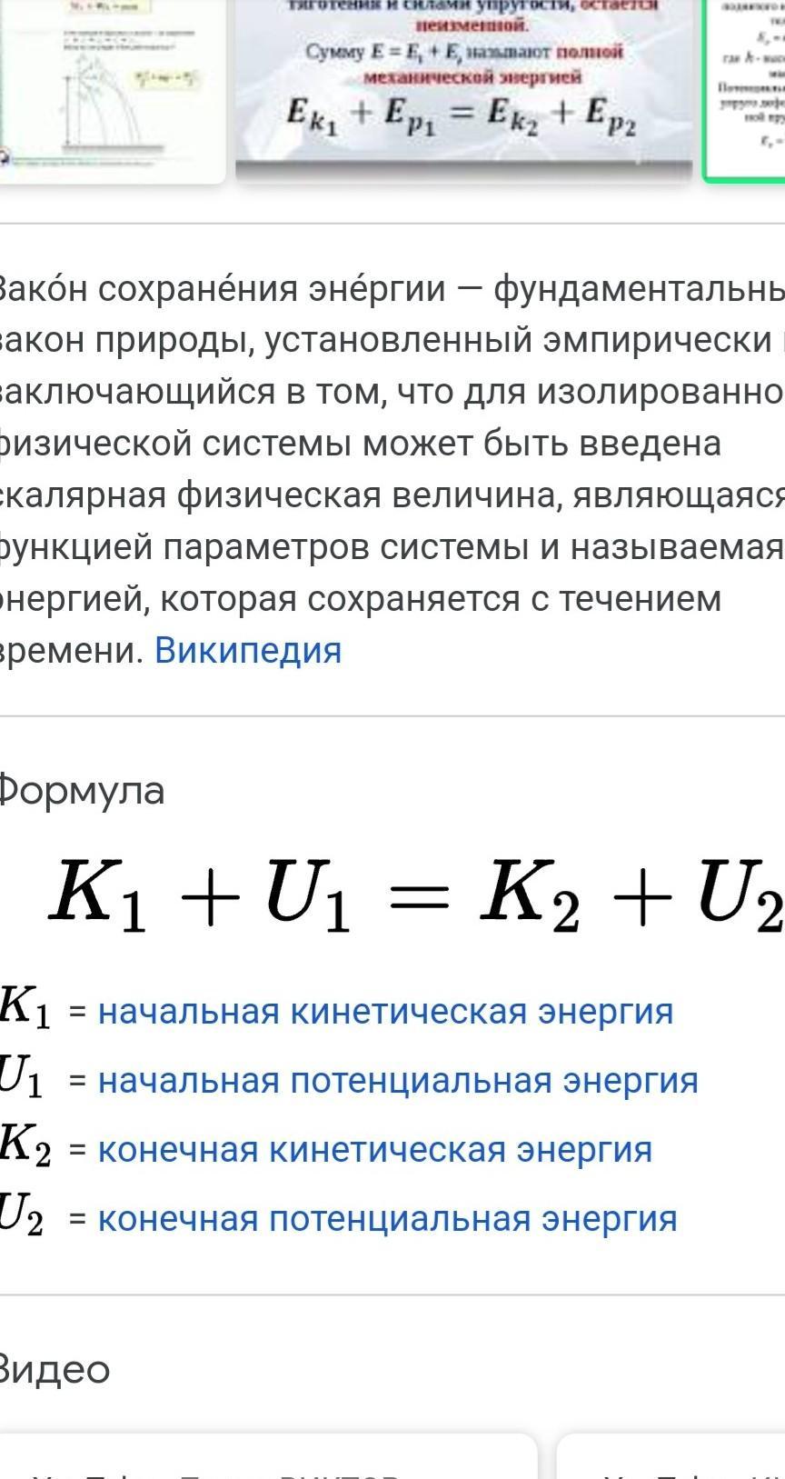 1.сумма потенциальной и кинетической энергии тела, остается постоянной, если действуют только силы упругости и тяготения и отсутствуют силы трения