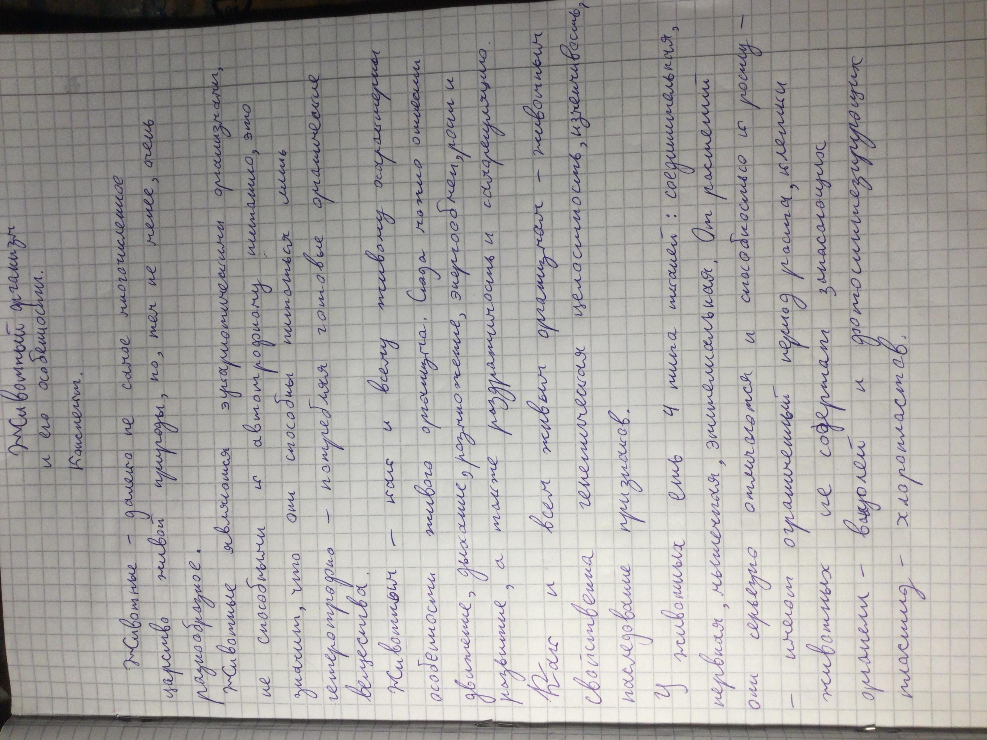 Конспект «Животный организм и его особенности»