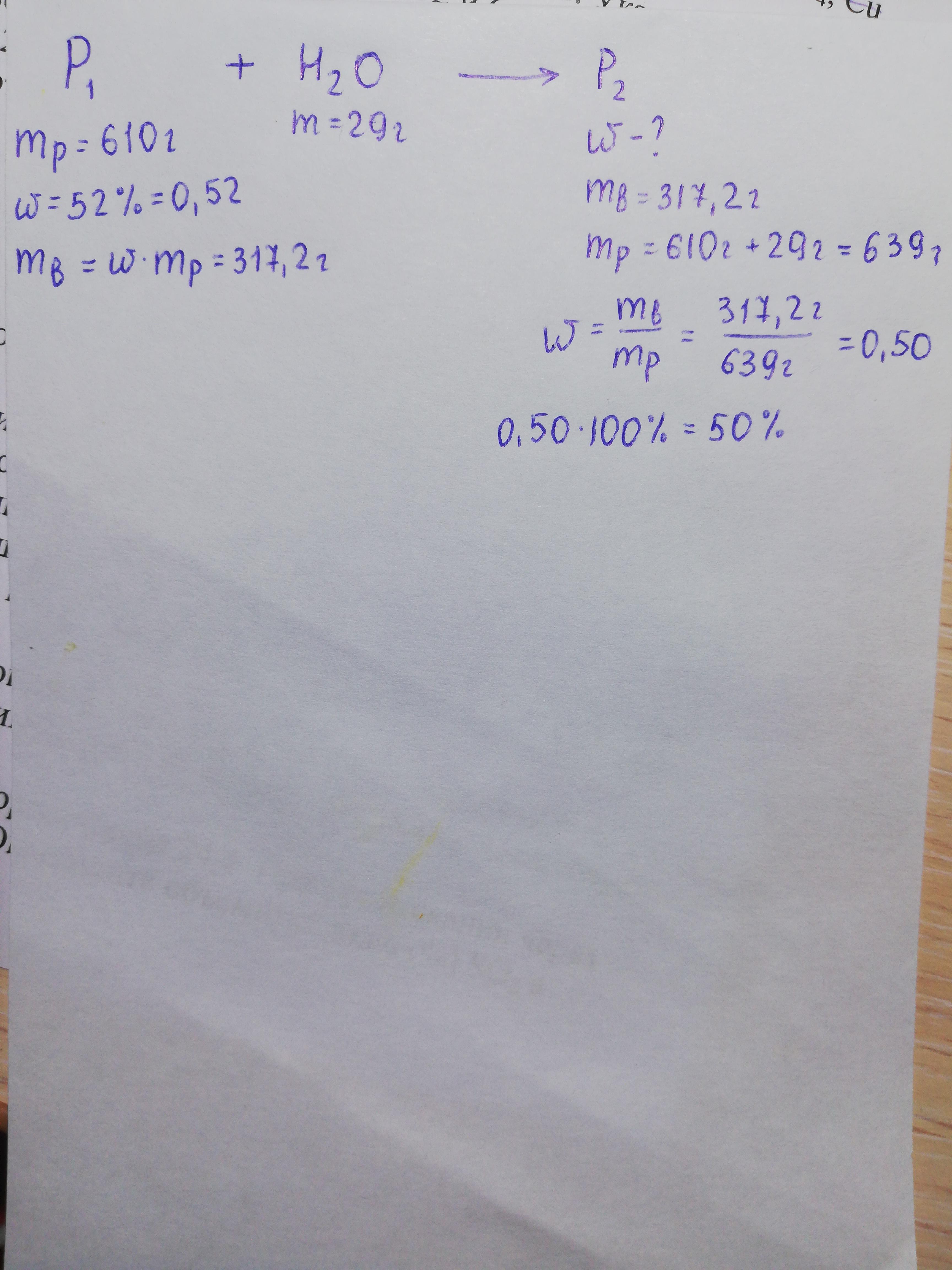 к 610 грамм 52% раствора кислоты добавили 29 г воды .Вычислите массовую до кислоты в обращовавшемся растворе