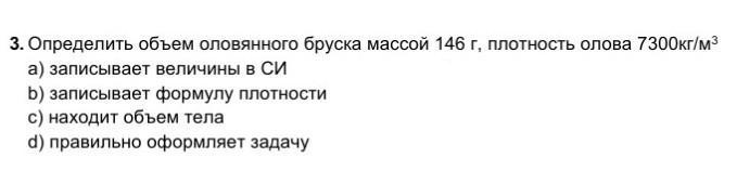 Дано: m (масса оловянного бруска) = 146 г (0,146 кг). Постоянные величины: ρо (плотность олова) = 7300 кг/м3. Объем данного оловянного бруска будет равен отношению его массы и табличного значения плотности олова: V = m / ρо. Произведем расчет: V = 0,146 / 7300 = 0,00002 м3 = 20 * 10-6 м3 = 20 см3.