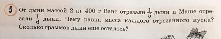 1)2400*1/5=840(гр.)- дыни у Вани