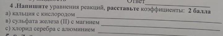 4.Напишите уравнения реакций, расставьте коэффициенты: