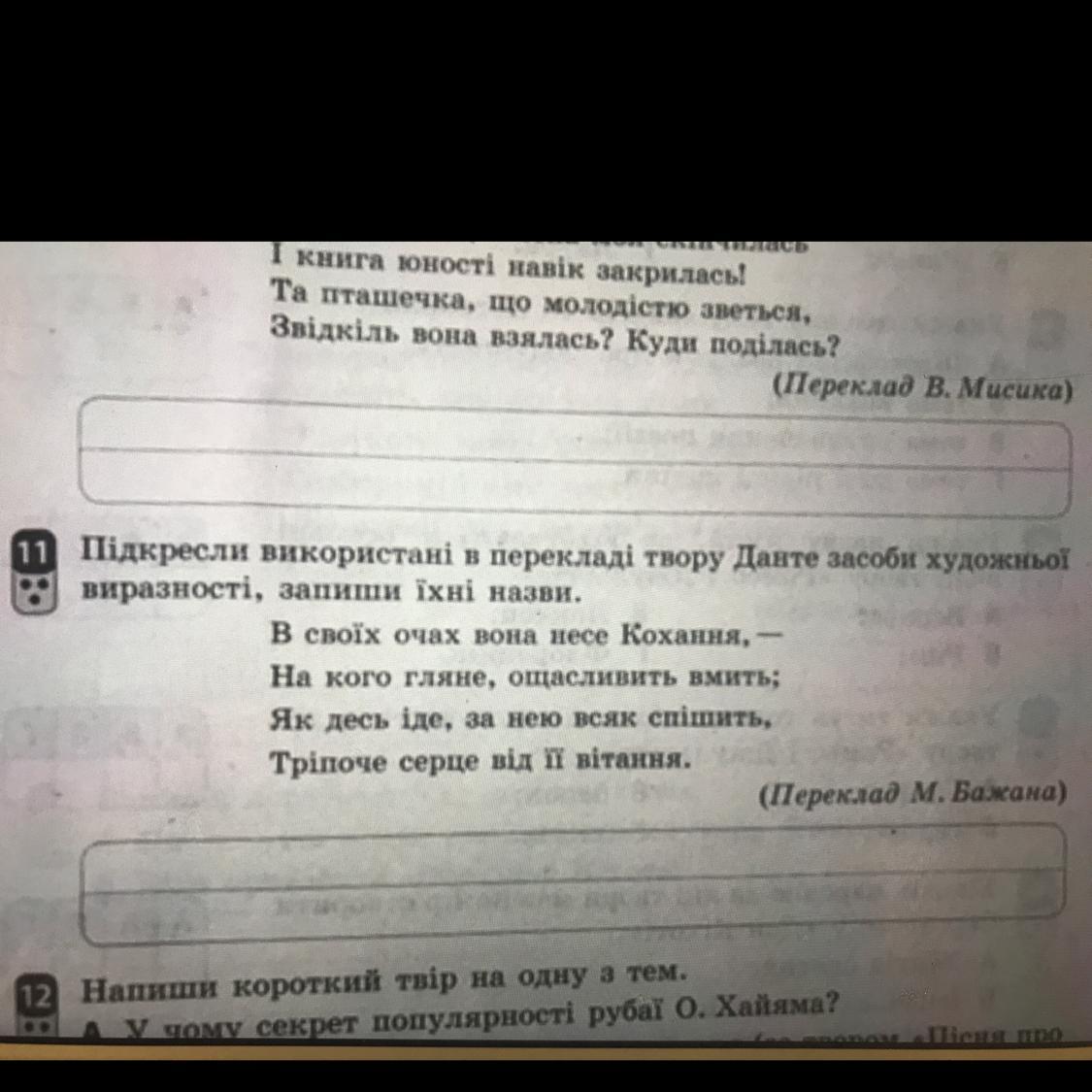 Підкресли використані в перекладі твору Данте засоби художньої