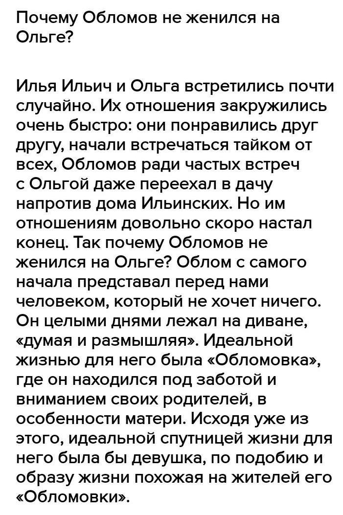 Тема: История любви: почему Обломов не женился на Ольге? (По роману И.А. Гончарова "Обломов"