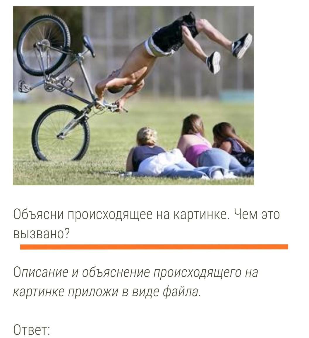 велосипед резко затормозил, а тело, пытаясь сохранить свою скорость, по инерции полетело