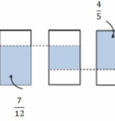 1) 1-7/12=12/12-7/12=5/12 пустая часть первого стакана; 2) 1-4/5=5/5-4/5=1/5 пустая часть третьего стакана; 3) 5/12+1/5=(5*5+12)/60=37/60 пустота во втором стакане. 4) 1-37/60=60/60-37/60=23/60