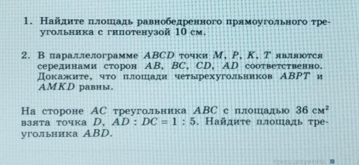 1. Площадь прямоугольного треугольника равна произведению длин катетов, деленное на 2. Для прямоугольных треугольников справедлива теорема Пифагора. Треугольник равнобедренный, значит можем обозначить длину катета за х. Тогда: