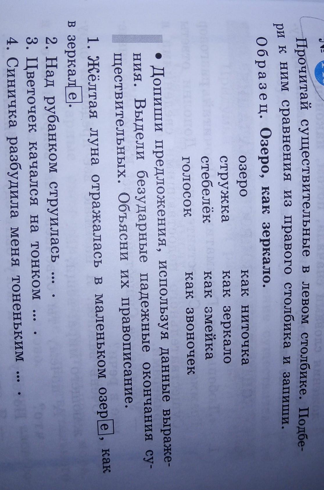 Прочитай существительные в левом столбике. Подбери к ним сравнение из правого столбика и запиши. образец: озеро, как зеркало