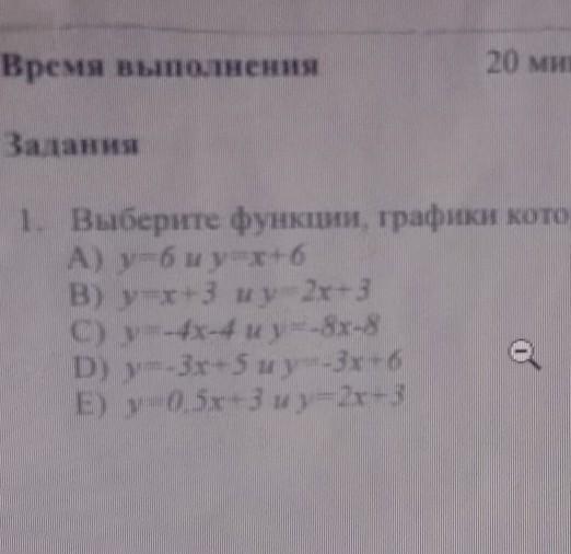 1. Выберите функции, графики которых параллельны, ответ обоснуйте: