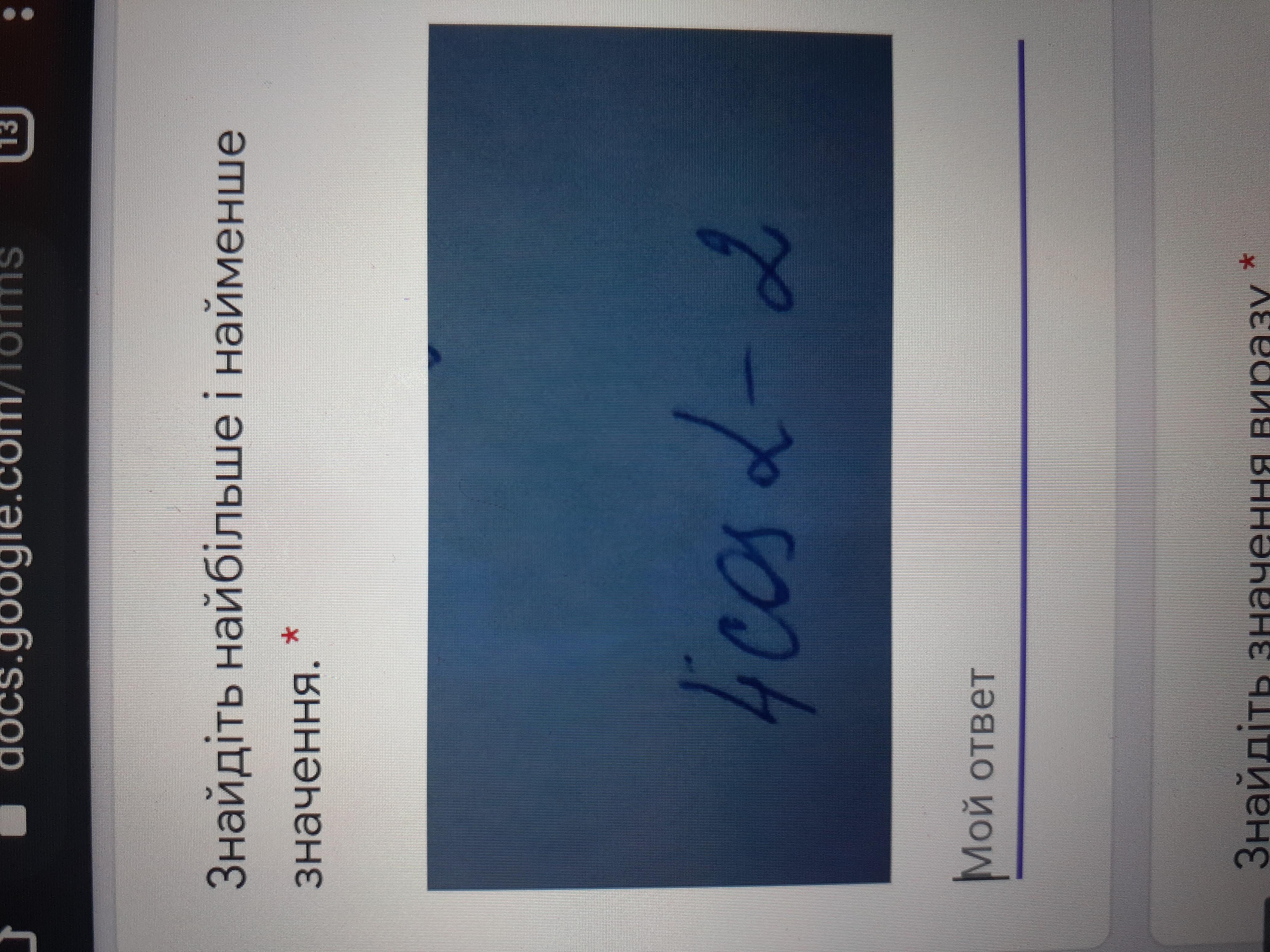 Значение косинуса изменяется от нуля до единицы. Следовательно наибольшее значение 4*1-2=2, а наименьшее значение 4*0-2=-2,