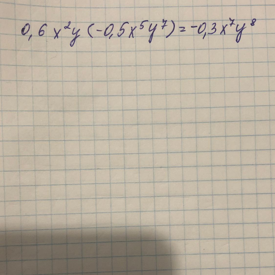 1) 0,6х²у(-0,5х⁵у⁷)= - 0,3х⁷y⁸