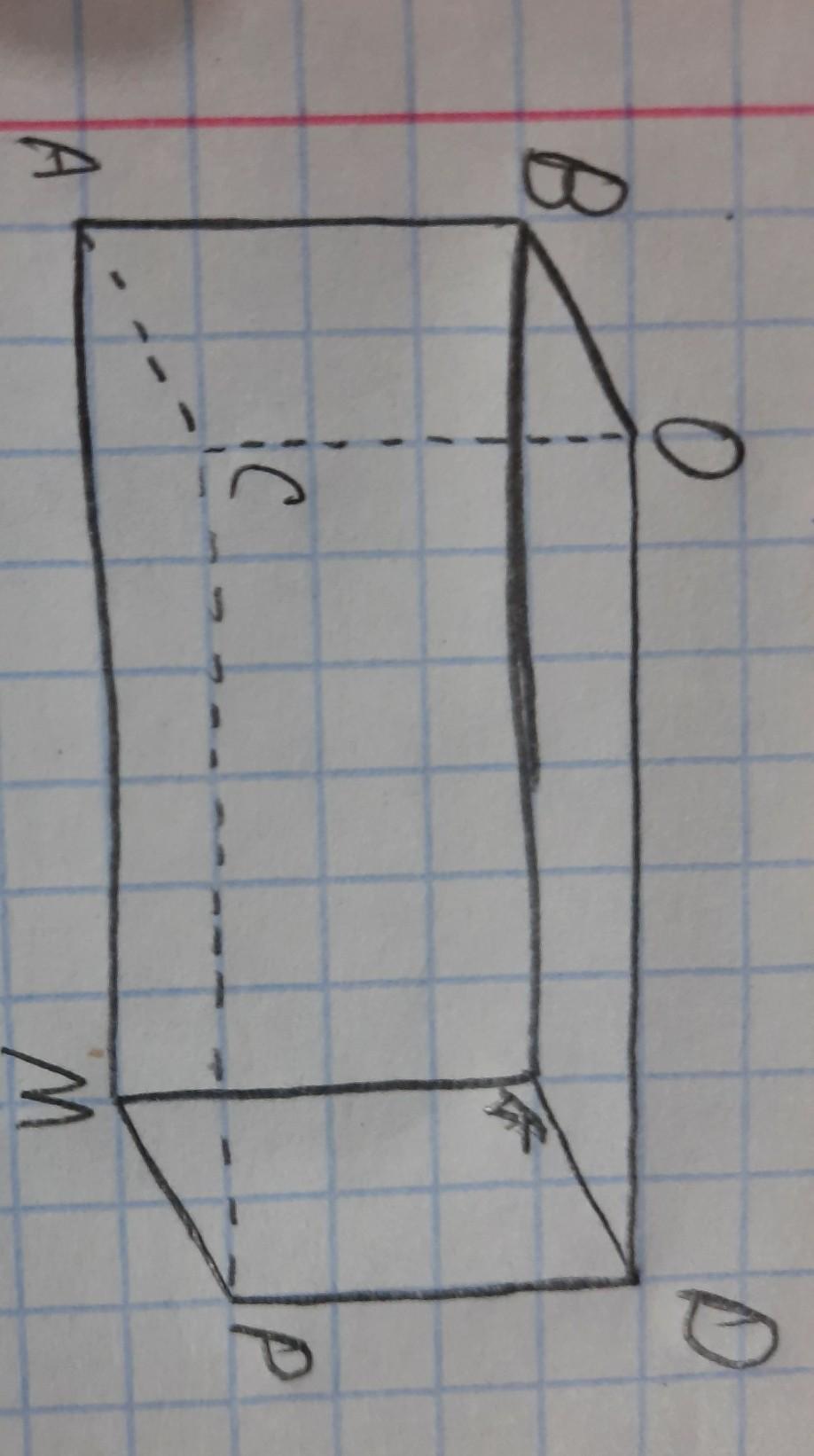 Дано:прямоугольный параллелепипед. a=5см b=33м c=6см. Найти площадь ACPM, MKOP, ABCM.