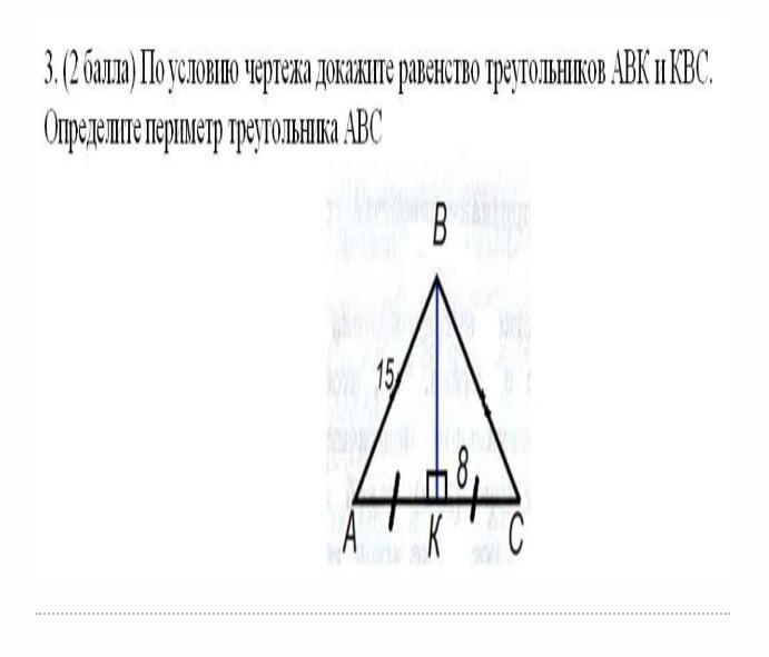 по условию чертежа докажите равенства треугольников ABK и KBC определите периметр треугольника ABC