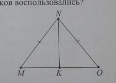 2) Т.к. NK-медиана, значит MK=OK. А MN=ON и <NMK=<NOK по условию (тр-к MNO равнобедр). Значит тр-ки MKN и OKN равны по 1му признаку.