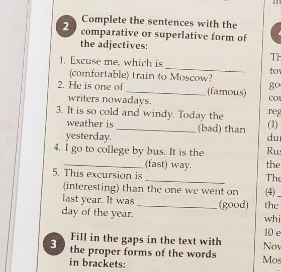 Complete the sentences with the comparative or superlative form of the adjectives: помогите пожалуйста срочно
