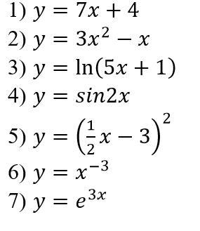 7) y=e^3x y'=3*e^3x y'(0)=3*e^3*0= 3*1=3