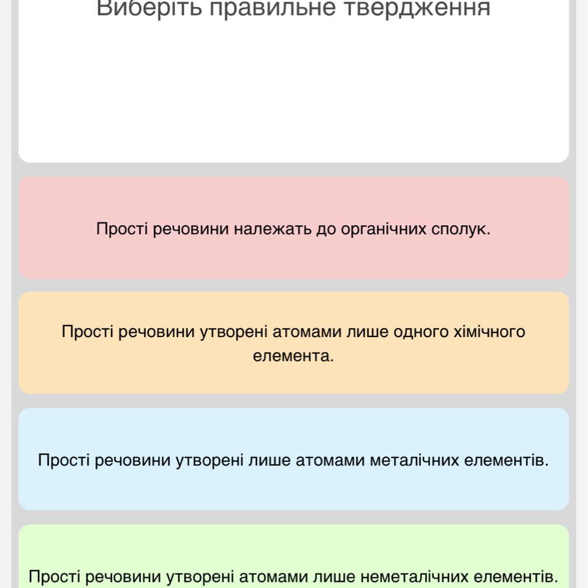 Ответ:Прості речовини утворені лише атомами одного хімічного елемента