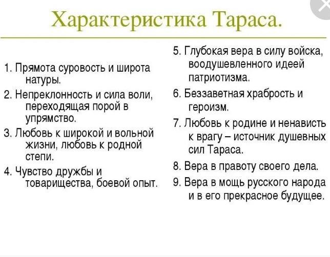 ДЗ: характеристика Тараса Бульбы (по плану, письменно)