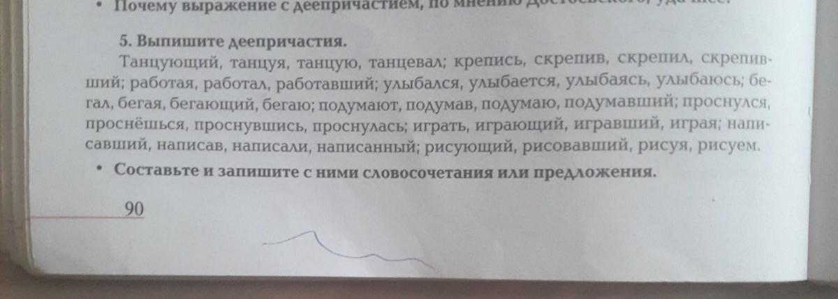 Танцуя, скрепив, работая, улыбаясь, бегая, подумав, проснувшись, играя, написав, рисуя.
