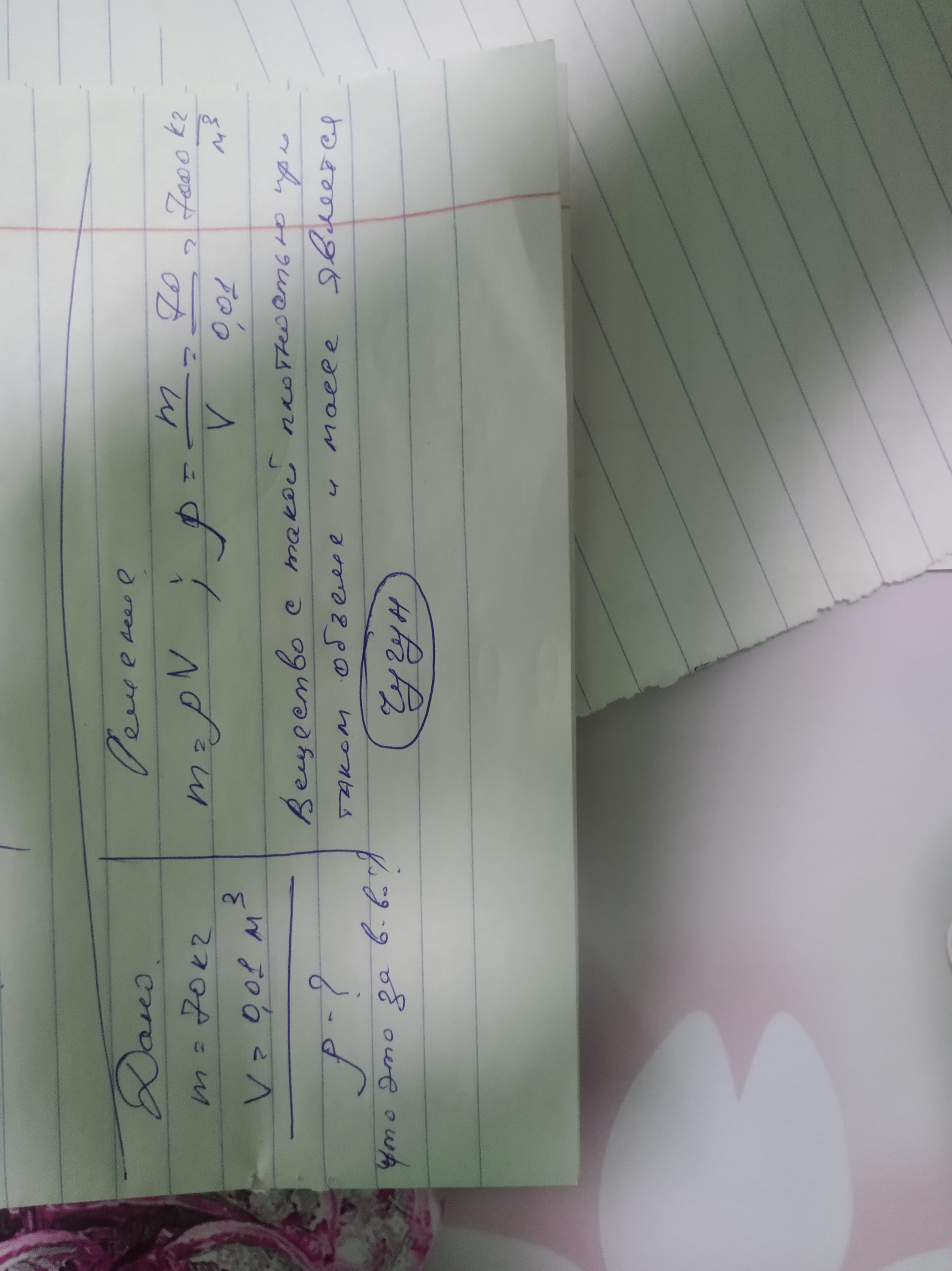 Вещество имеет массу 70 кг. Объем вещества 0,01 м3. Что это за вещество?