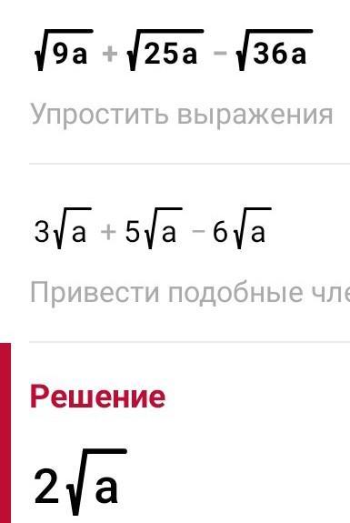 2)√9а + √25а - √36а = 3√а + 5√а - 6√а = 2√а