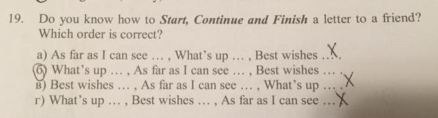 начало должно содержать что-то в ответ про прошлое письмо или вопрос как ты? что случилось? (What's up(Как дела)) ... Середина письма это и есть сам розказ что нового у вас произошло или какая-то ситуация про которую у вас спрашивали в прошлом письме в нашем варианте (As far as I can see (насколько я вижу...)) (я думаю здесь имеется ввиду про какую-то ситуацию). И конец письма должно быть окончания ( Жду твой ответ waiting for your latter, пожелания Best wishes(как в нашим варианте)).