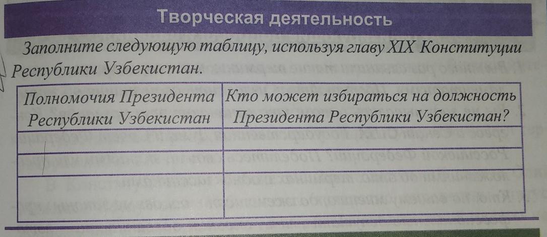 Согласно 90-й статье Конституции Республики Узбекистан, президентом Республики Узбекистан может быть может быть избран гражданин Республики Узбекистан не моложе тридцати пяти лет, свободно владеющий государственным языком (то есть узбекским языком), постоянно проживающий на территории Узбекистана не менее десяти лет