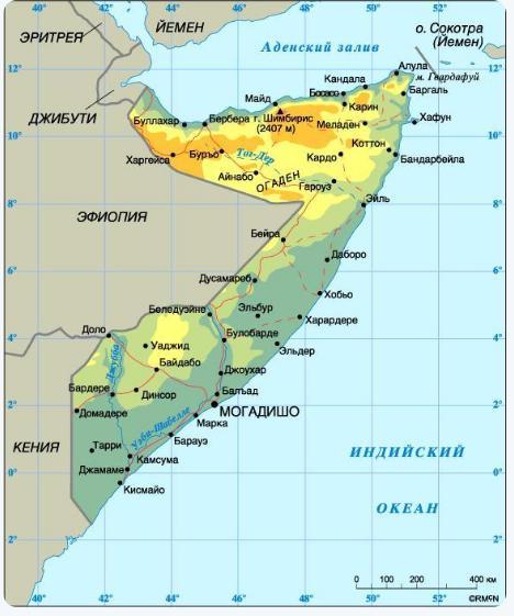 2) В какой части материка расположена страна. Как называется ее столица? Страна расположена в восточной части материка.Её столица Могадишо.