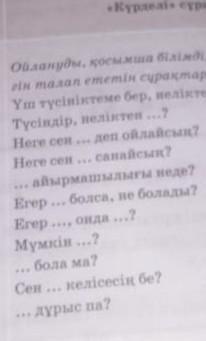 Тусиндир, неликтен олай? Неге сен олай деп ойлайсын? Онын айырмашылыгы неде? Егер олай болса, не болады? Егер ол, онда болса? Мумкин емес? Олай бола ма? Сен соган келисесин бе? Осы дурыс па?